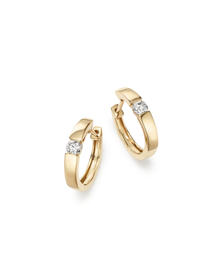 These Diamond Small Hoop Earrings by Bloomingdale's Fine Collection are a chic and understated design. Adorned with diamonds, they are perfect for adding a touch of sparkle to your everyday look.