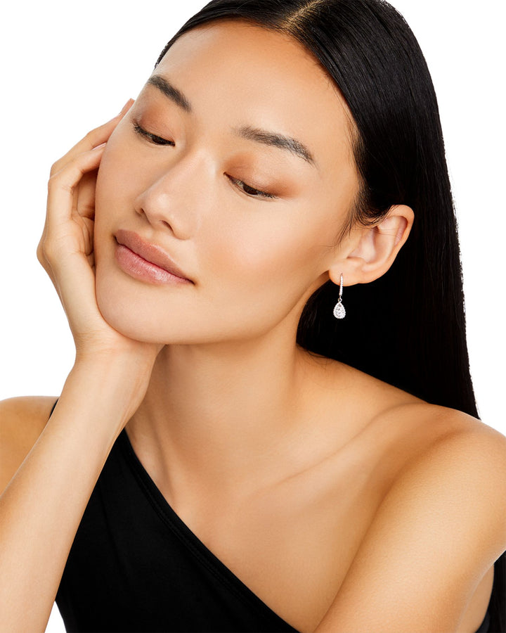 These Diamond Drop Earrings by Bloomingdale's Fine Collection offer timeless elegance. The sparkling diamonds set in white gold create a refined design, perfect for formal occasions or evening wear.