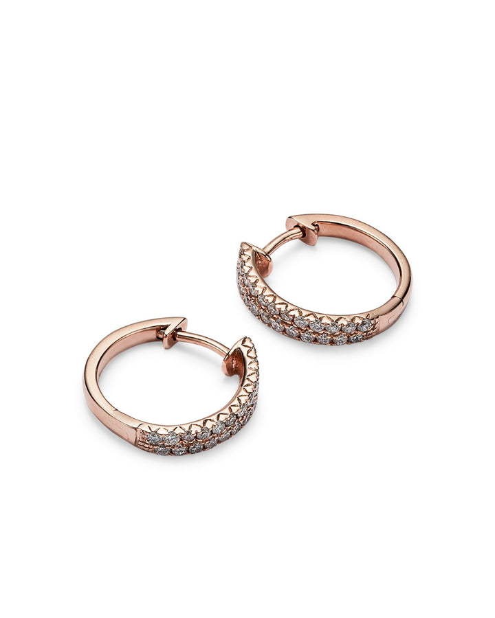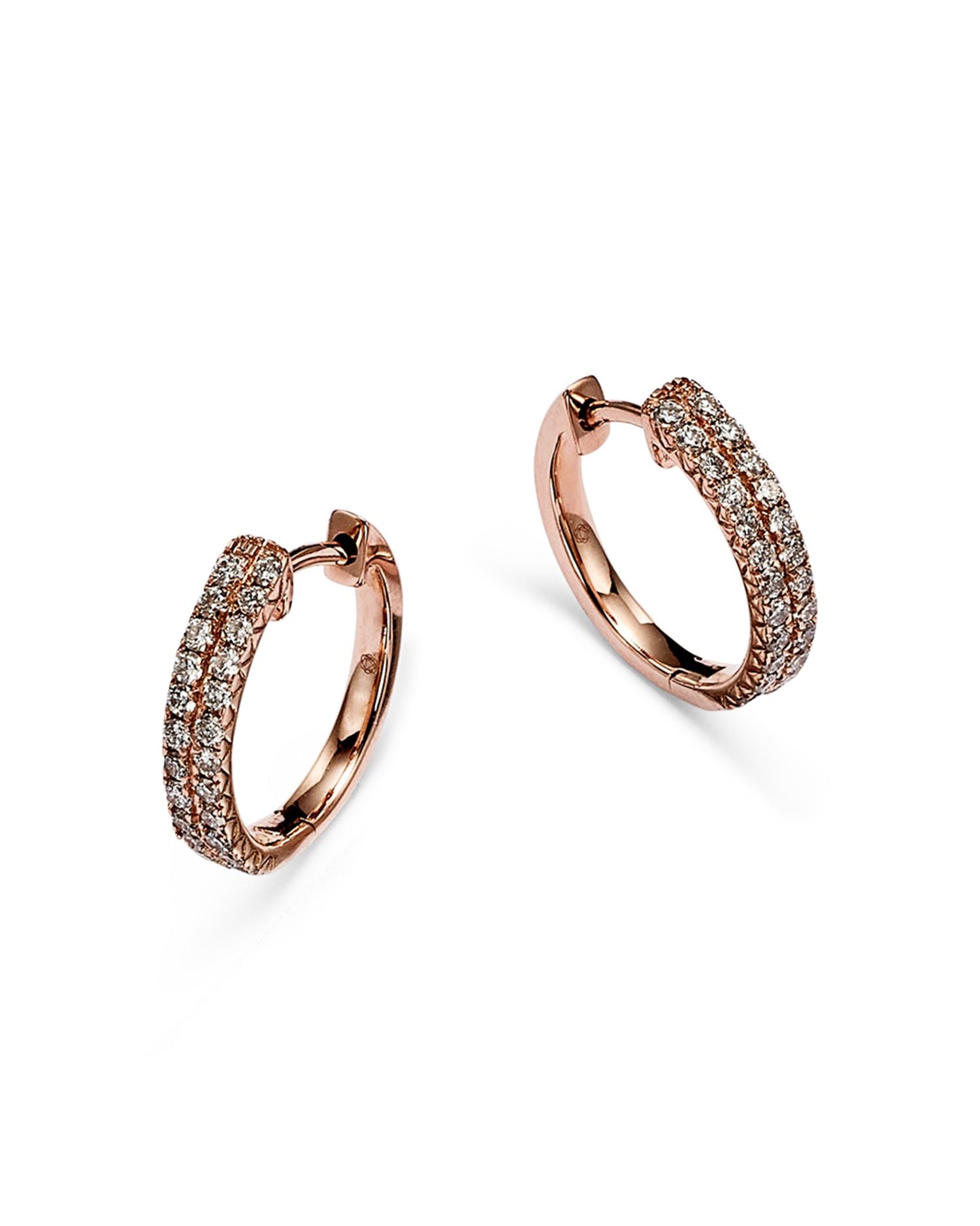 These Diamond Double-Row Huggie Hoop Earrings by Bloomingdale's Fine Collection add a touch of sparkle to any look. The double row of diamonds on rose gold huggies creates a small yet striking design perfect for everyday elegance.