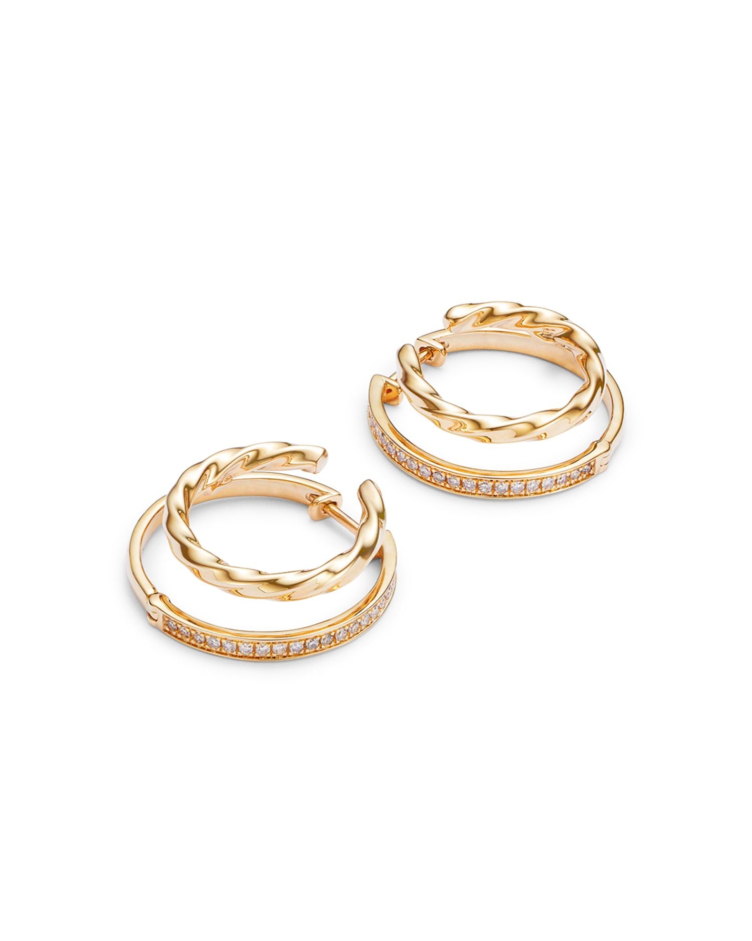 Diamond Double Hoop Earrings in 14K Yellow Gold, 0.25 ct. t.w.