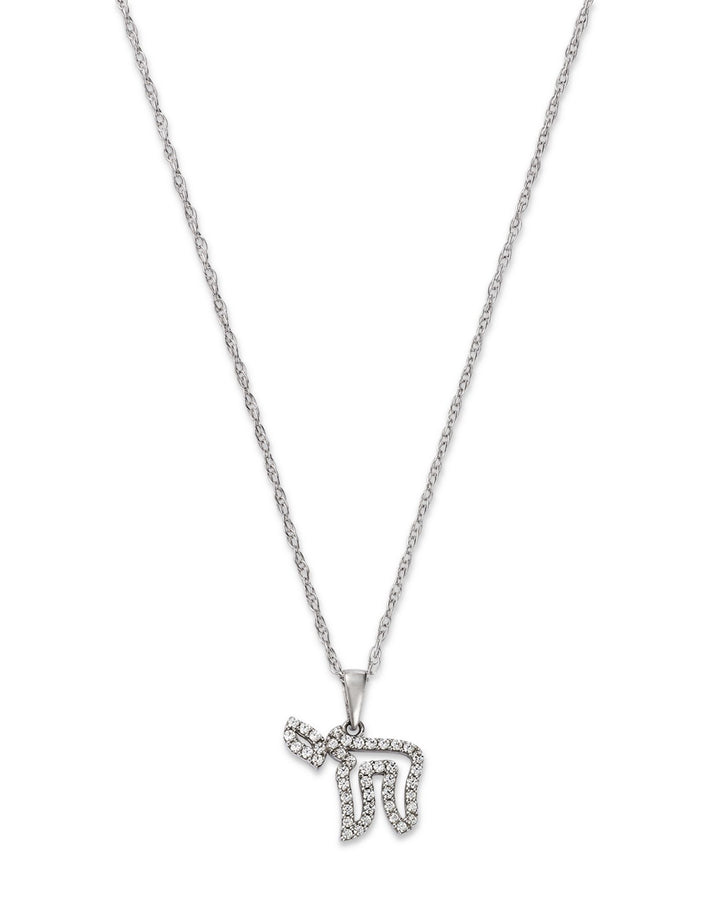 Diamond Chai Symbol Pendant Necklace in 14K White Gold, 18' - Exclusive