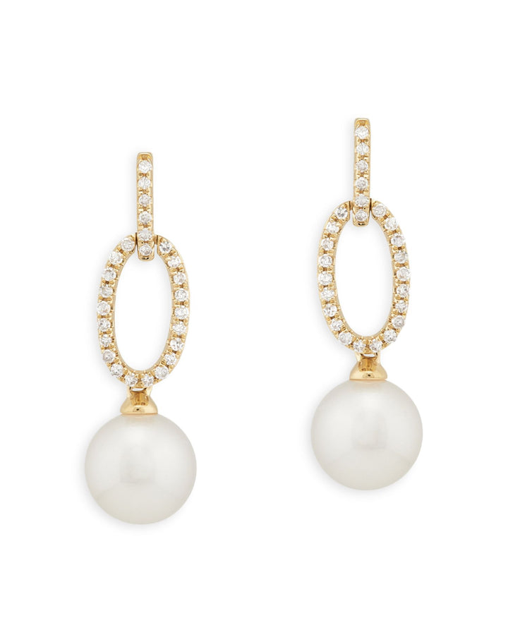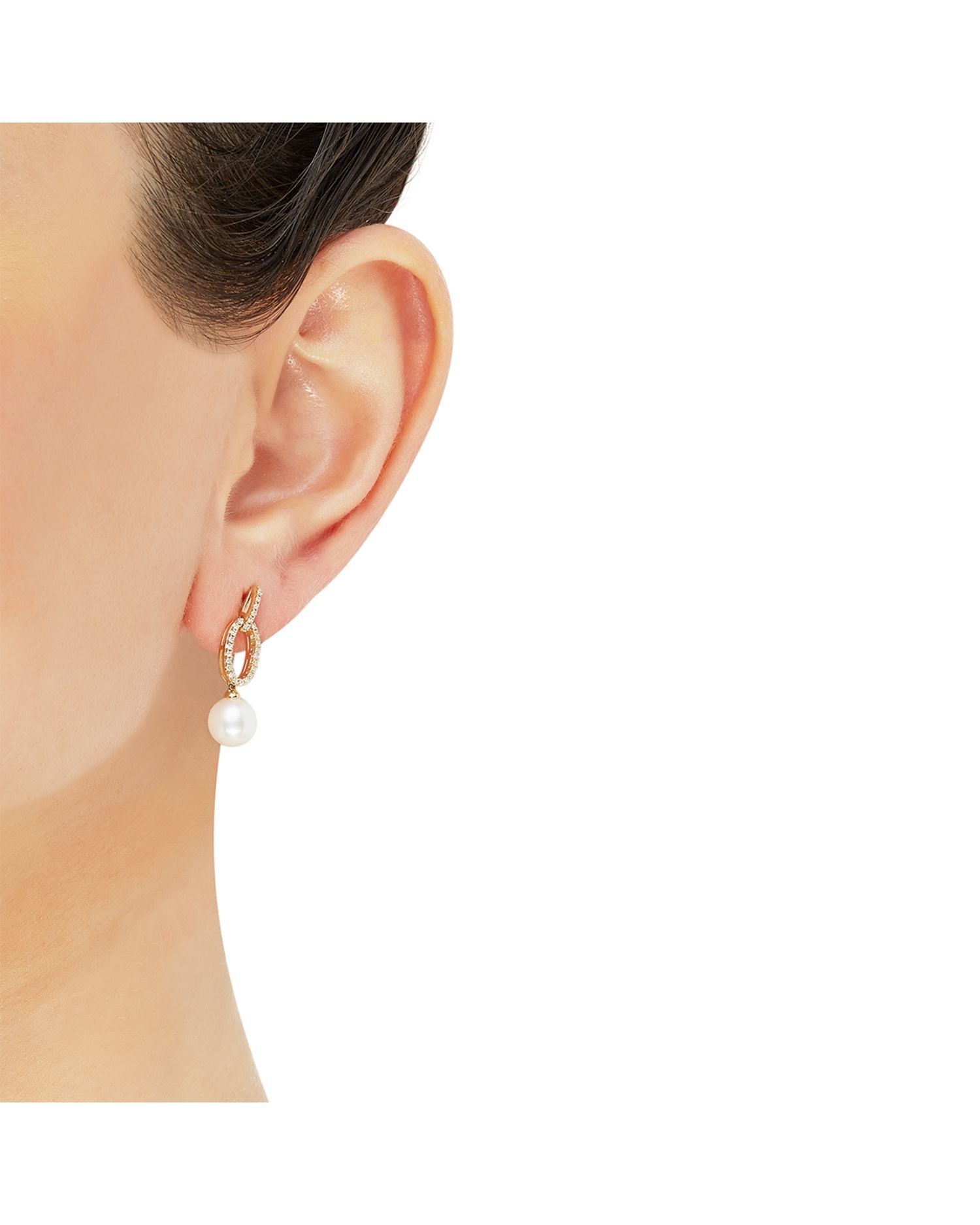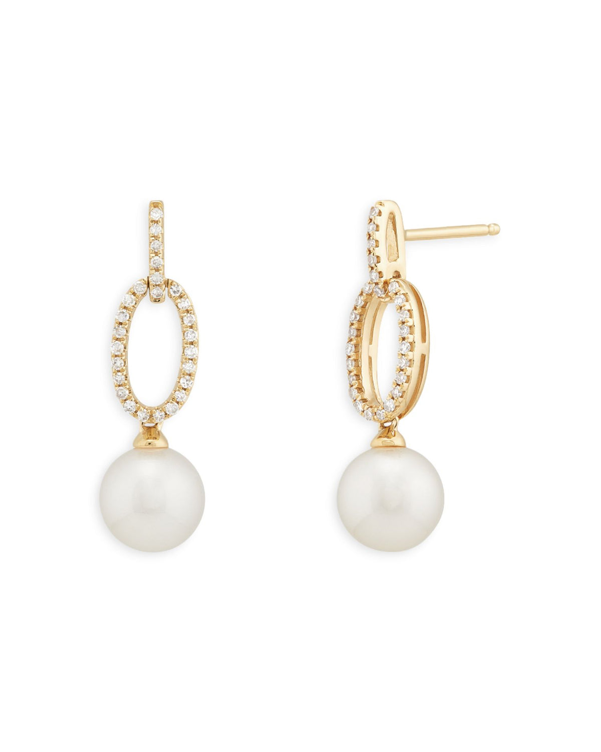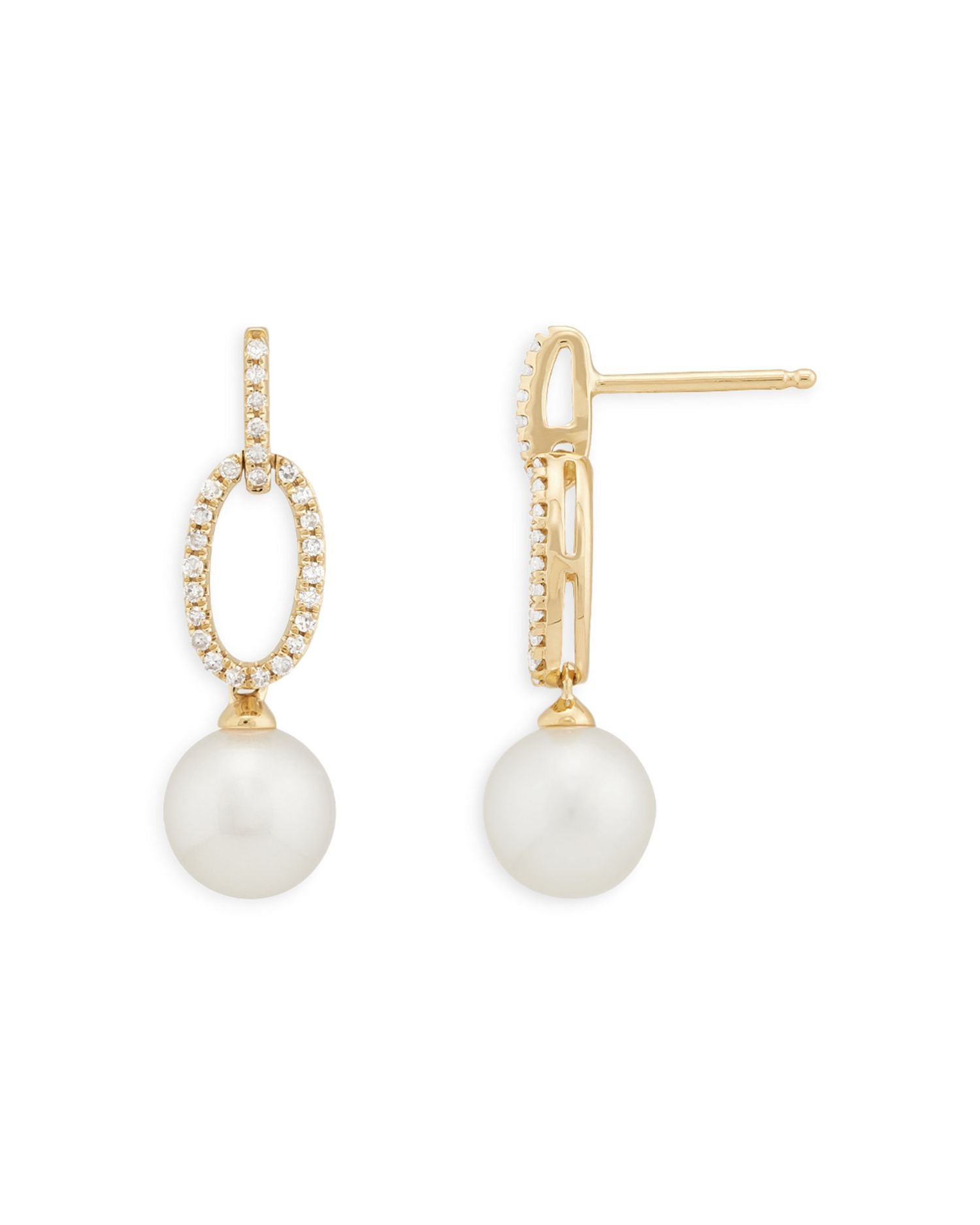 14K Yellow Gold Cultured Freshwater Pearl & Diamond Drop Earrings, 0.17 ct. t.w. - Exclusive