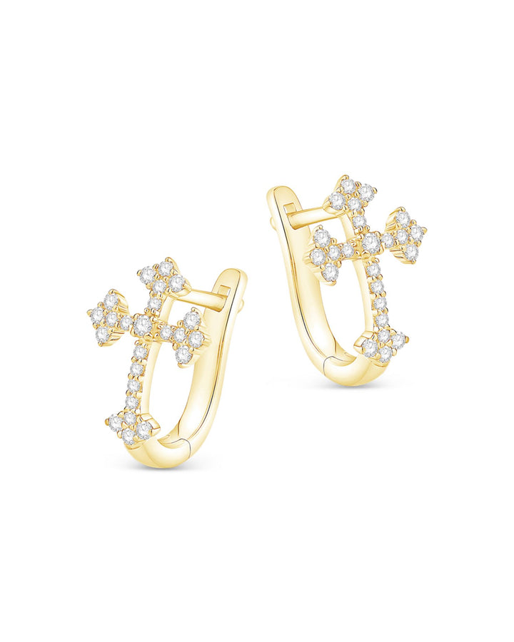 Diamond Cross Hoop Earrings in 14K Yellow Gold, 0.25 ct. t.w.