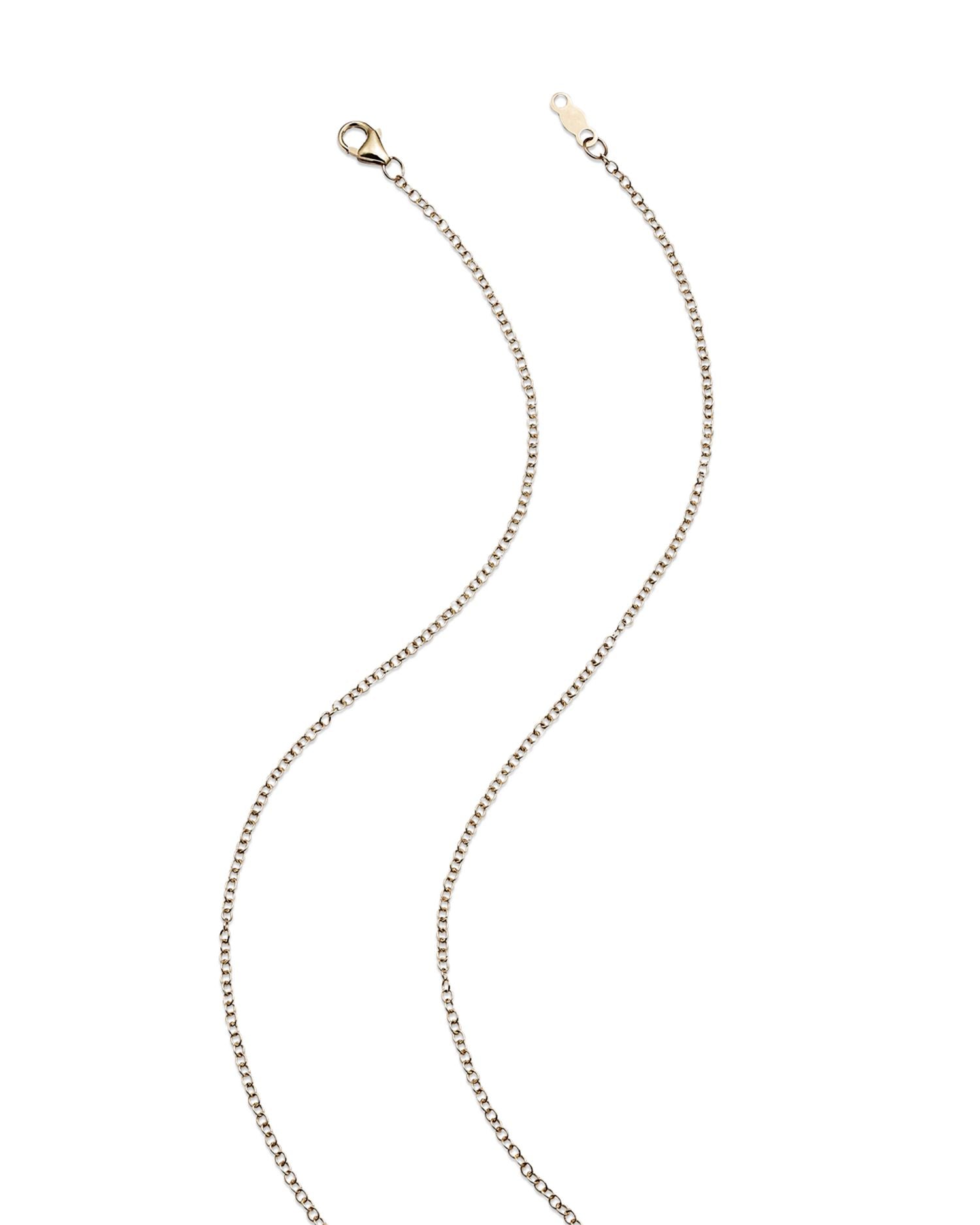 Handcrafted in 14K yellow gold. Set with 0.50 carat total weight of H/I1 diamonds and 0.30 carat total weight of blue sapphires. Chain length: 17'. Pendant length: 0.8'. Secured with a lobster clasp closure.