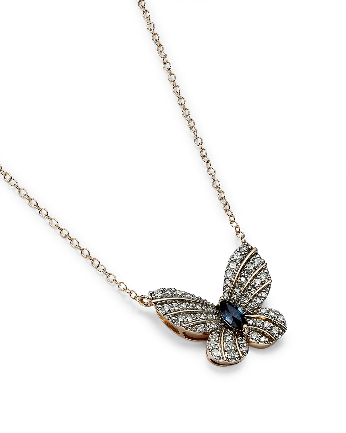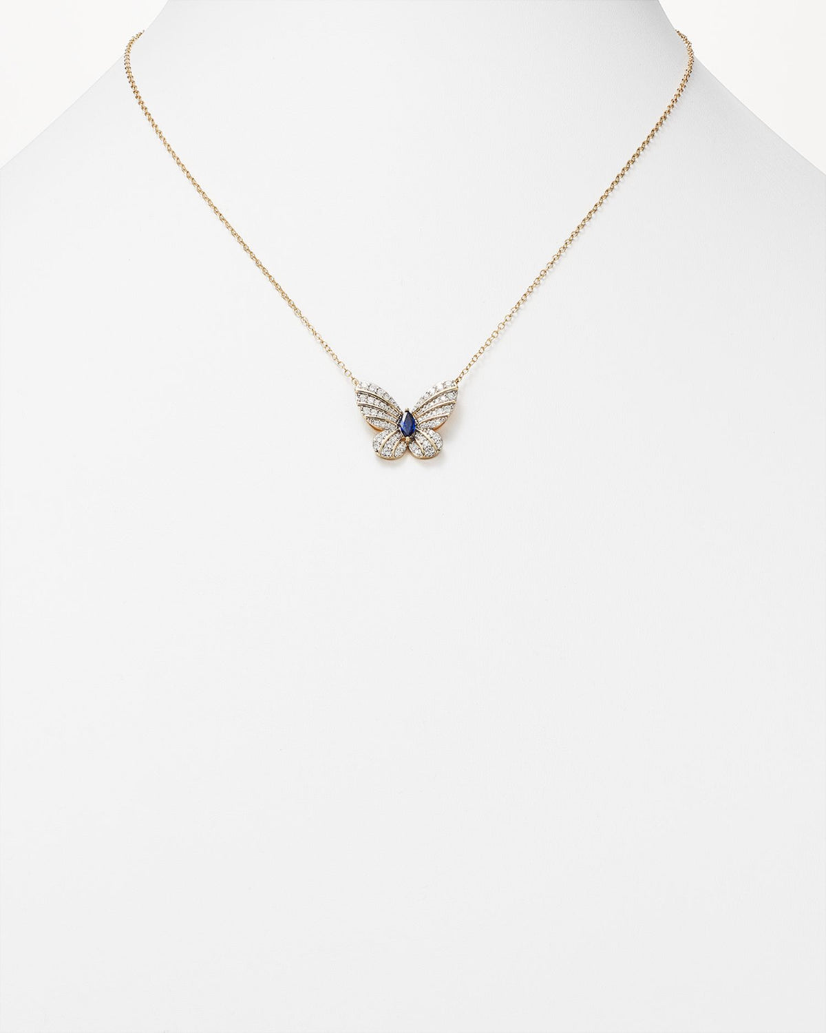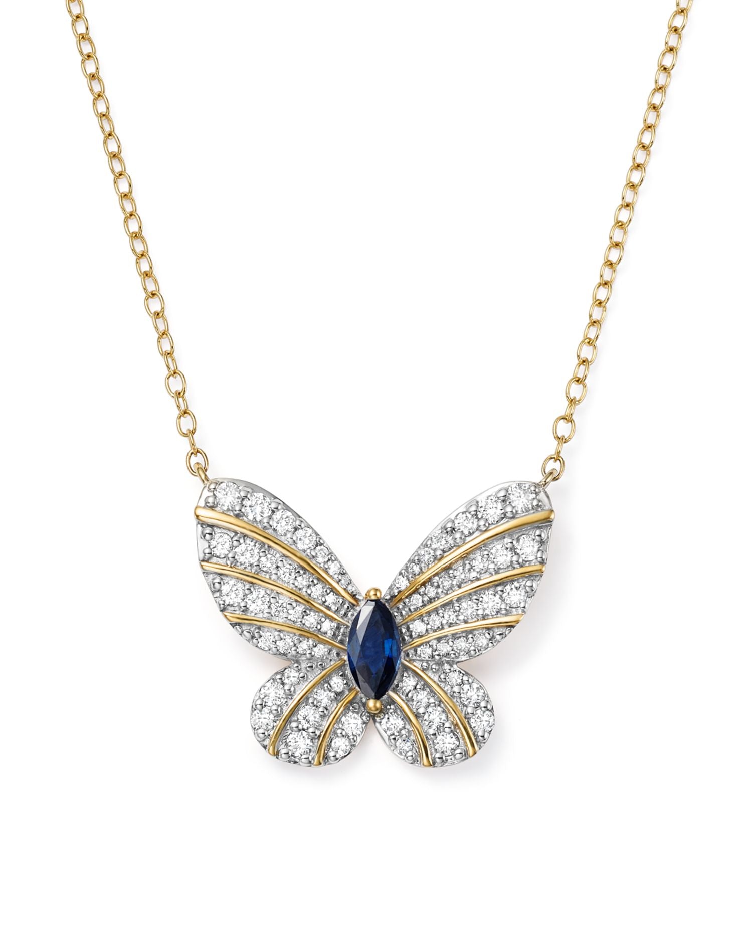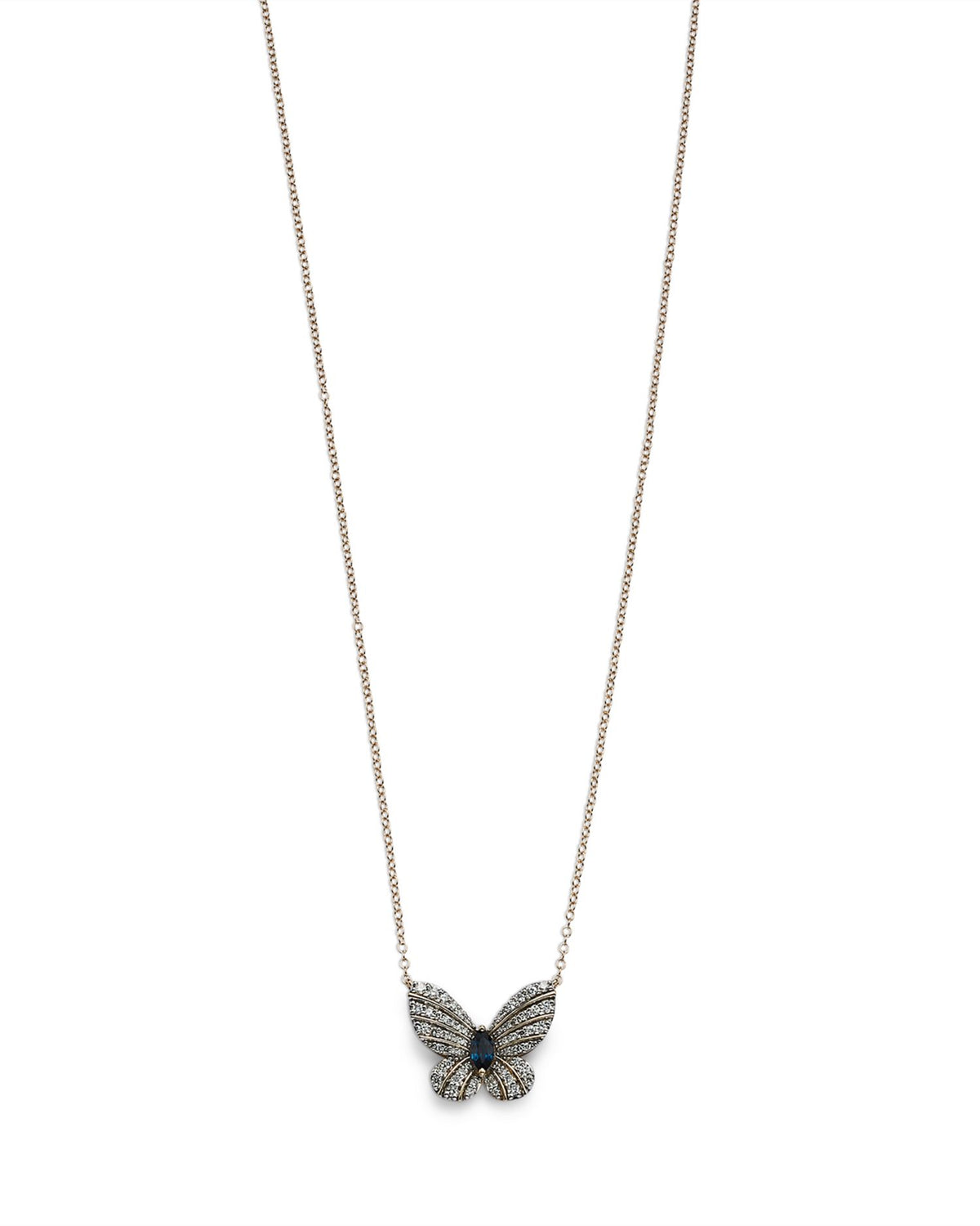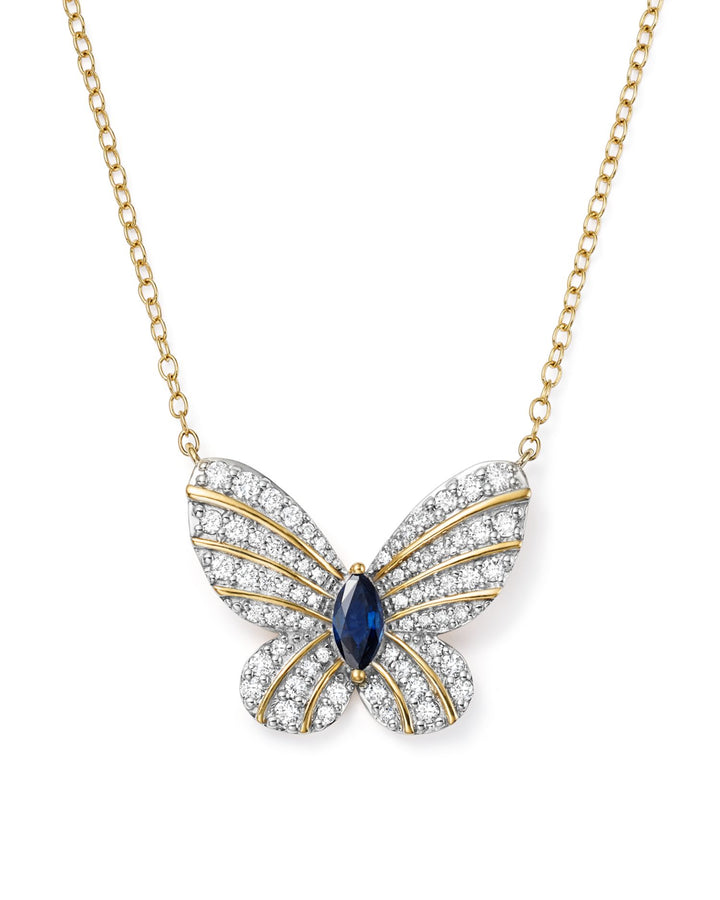 Diamond and Blue Sapphire Butterfly Pendant Necklace in 14K Yellow Gold, 17' - Exclusive