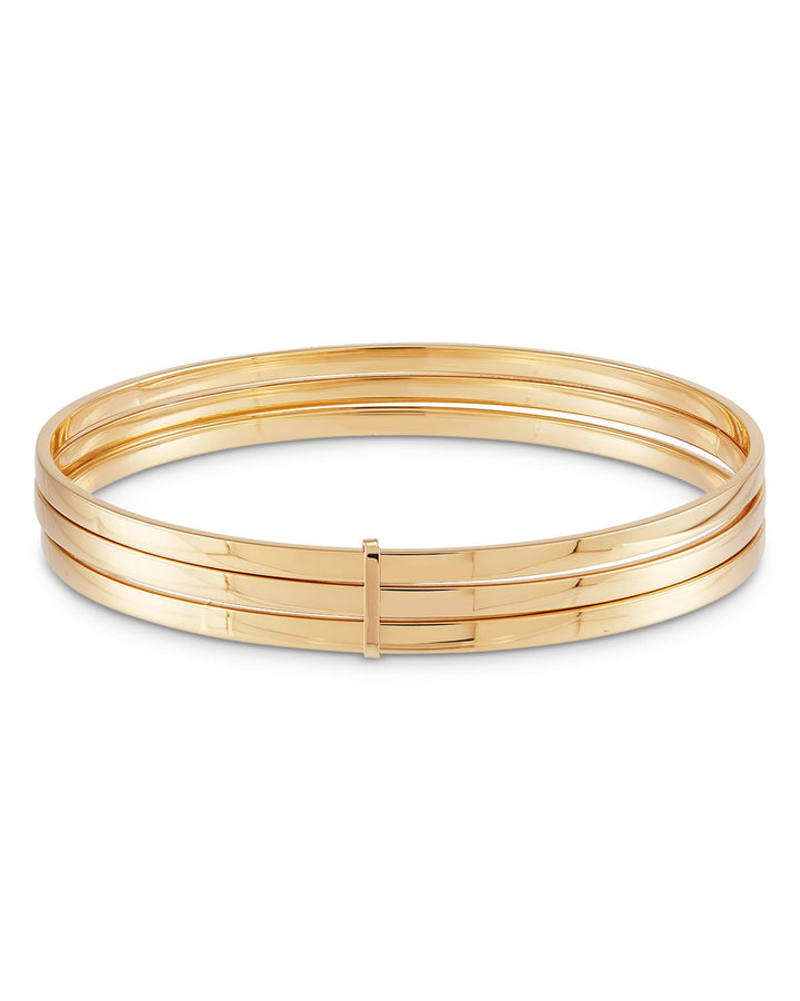 14K Yellow Gold Polished Trio Bar Slip Bangle Bracelet