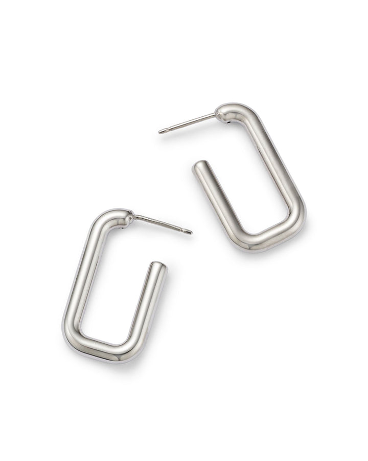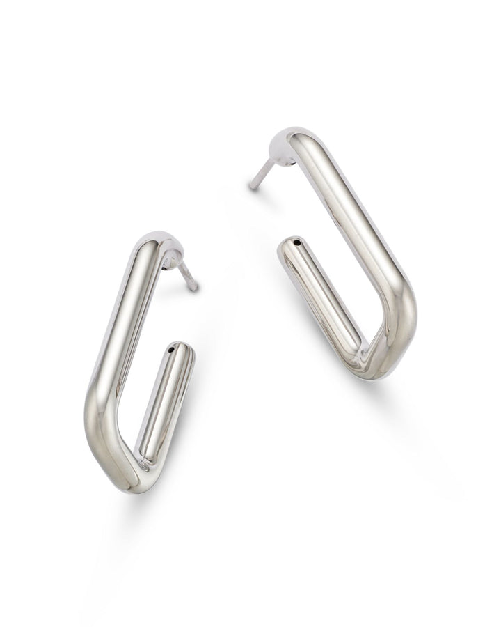 Polished Rectangle J Hoop Earrings in Sterling Silver