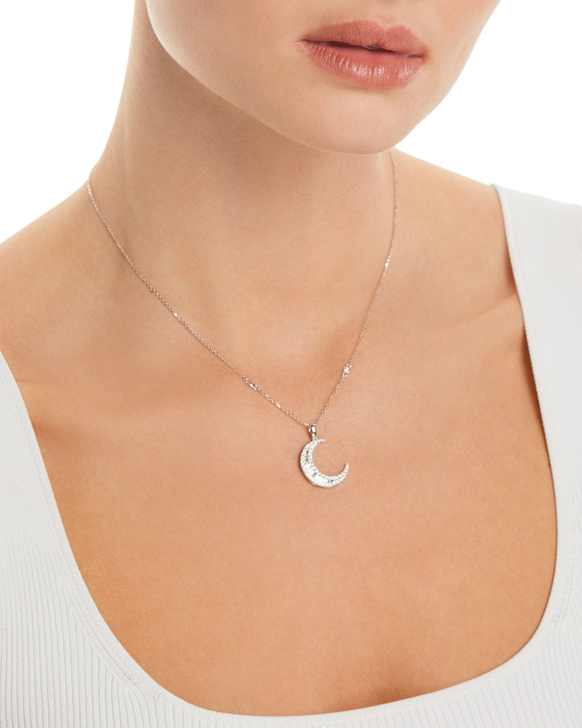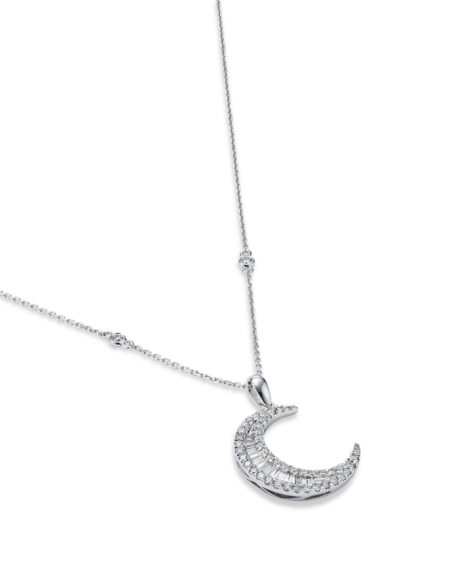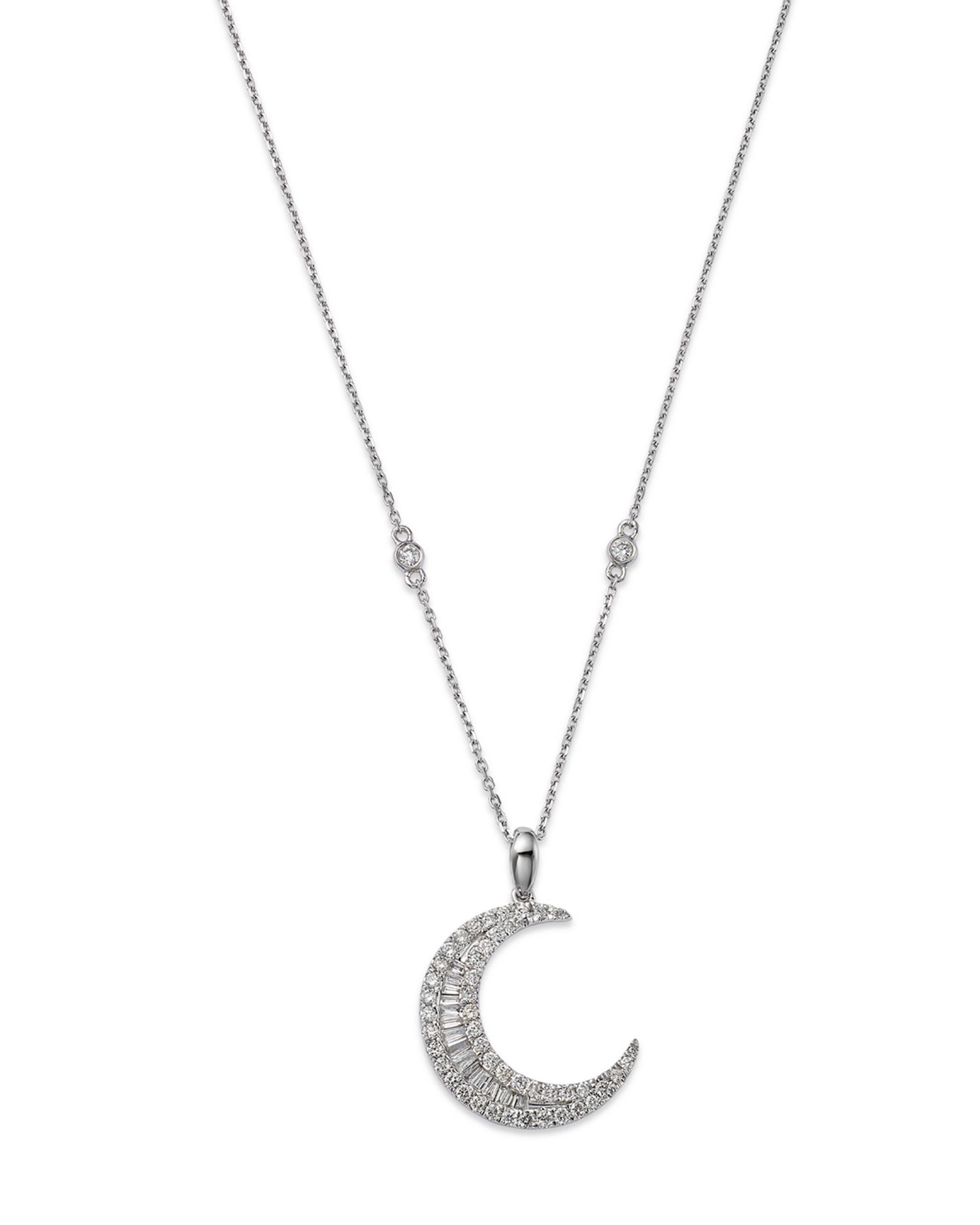 Diamond Baguette & Round Crescent Pendant Necklace in 14K White Gold, 0.62 ct. t.w. - Exclusive