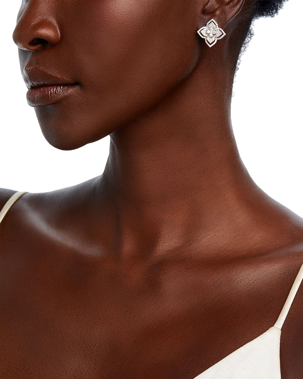 These Diamond Flower Stud Earrings by Bloomingdale's Fine Collection feature a glamorous openwork floral design set with sparkling diamonds. The intricate design highlights the brilliance of 2.25 ct. t.w. of diamonds, making these stud earrings a stunning addition to any collection. Crafted in 14K white gold, they add a touch of elegance to any outfit, whether worn casually or for special occasions.