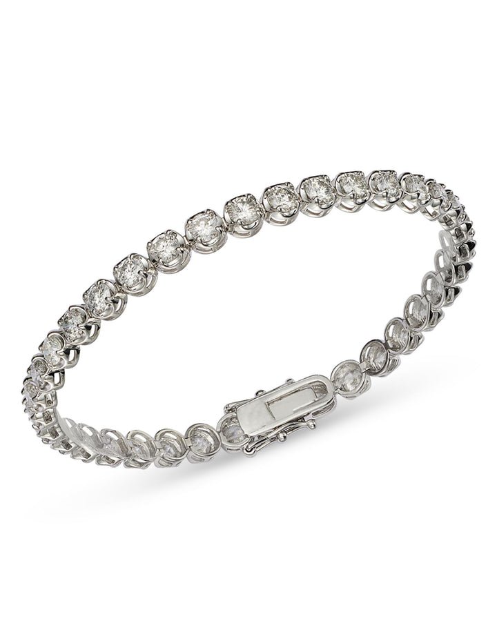 Crafted in 14K white gold with 7.0 ct. t.w. diamonds (color/clarity: HI/I1I2). Measures 7.25' with a secure box lock clasp. White gold is surface-coated with rhodium for enhanced shine, which may require replating over time.