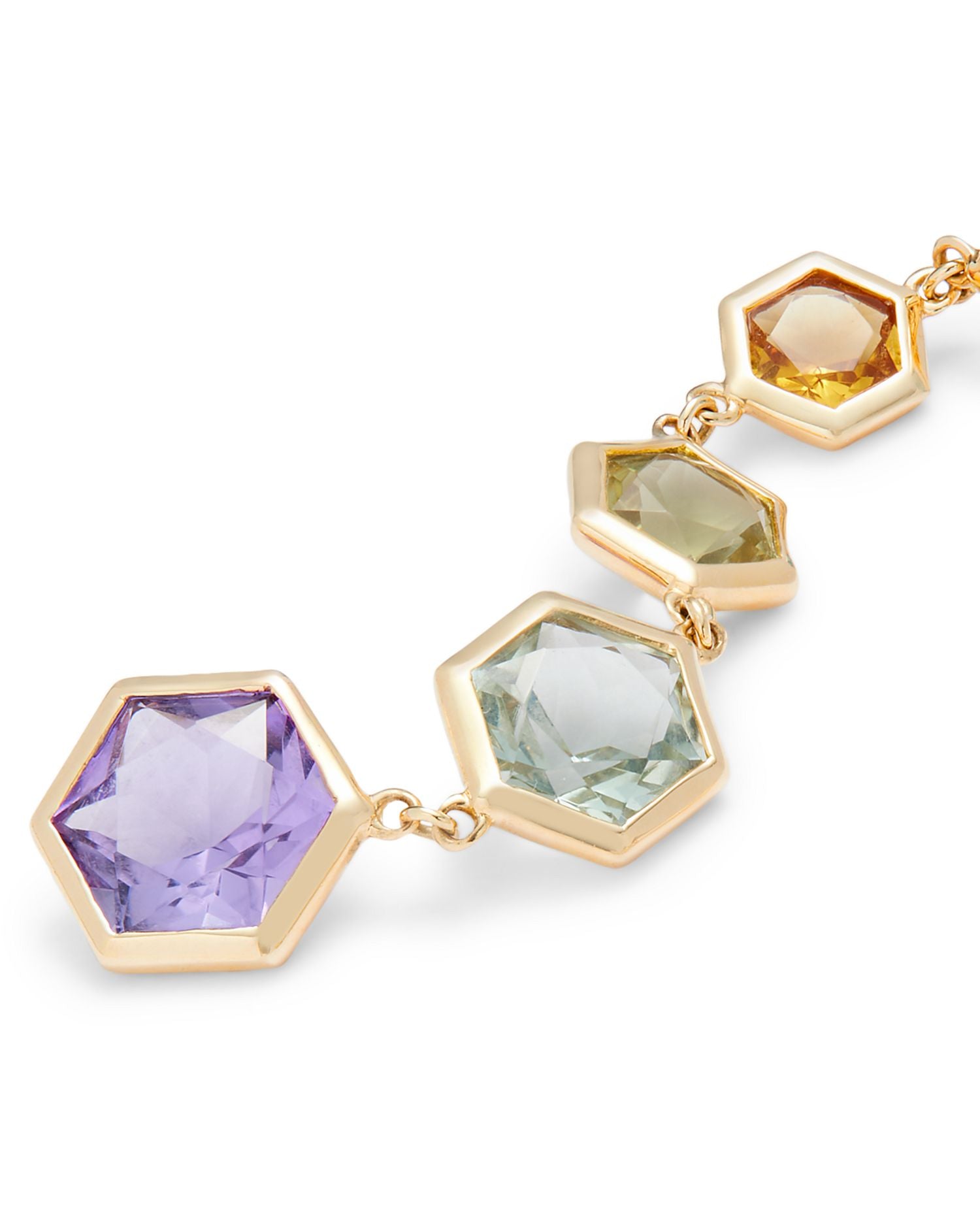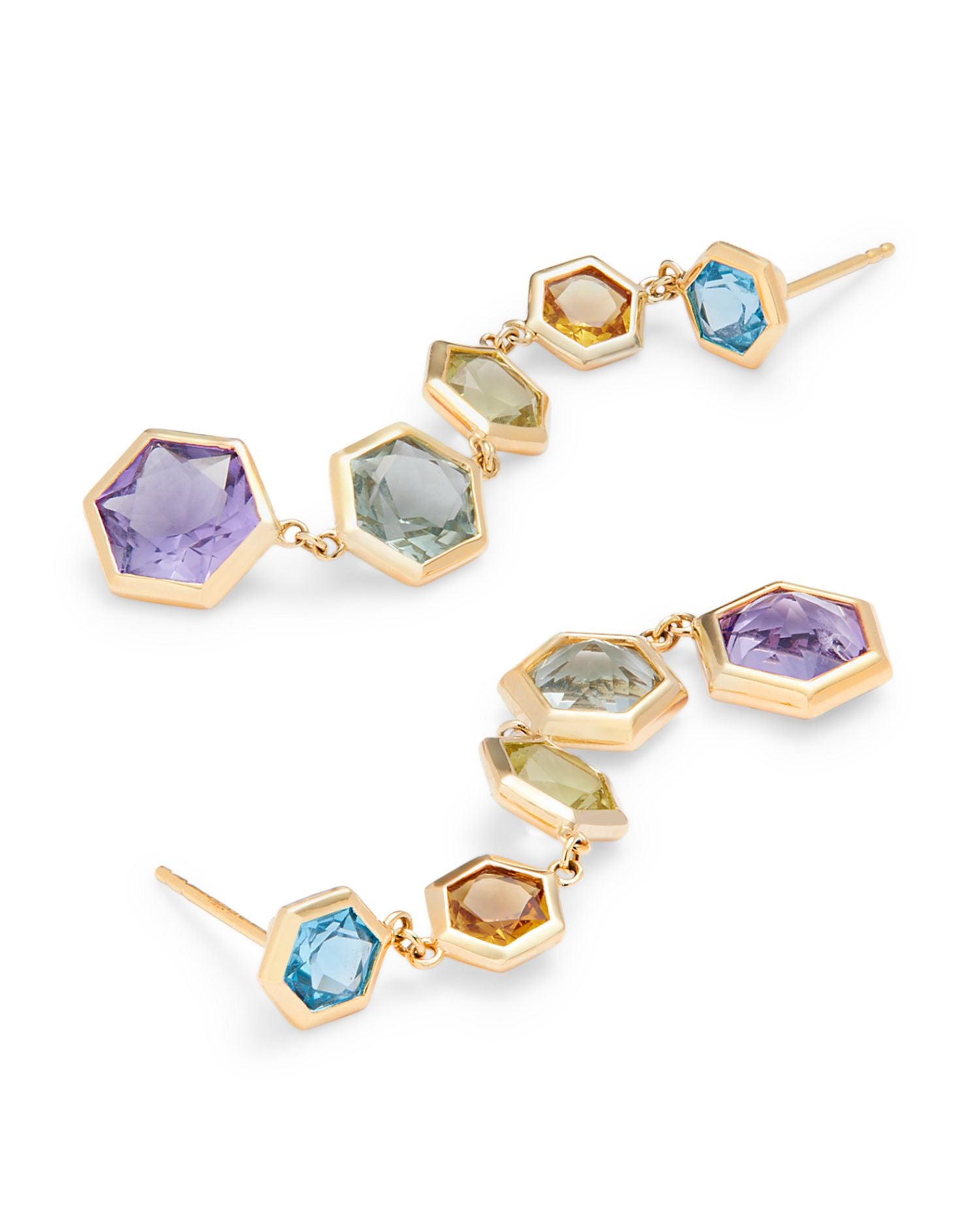 Multi Gemstone Hexagon Drop Earring in 14K Yellow Gold