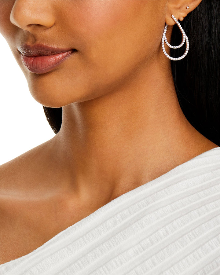 These Diamond Teardrop Earrings by Bloomingdale's Fine Collection feature double teardrops encrusted with shimmering diamonds. Their graceful design makes them a stunning choice for formal events or elevating everyday style.