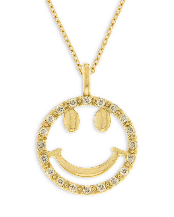 Diamond Smiley Face Pendant Necklace in 14K Yellow Gold, 0.10 ct. t.w. - Exclusive
