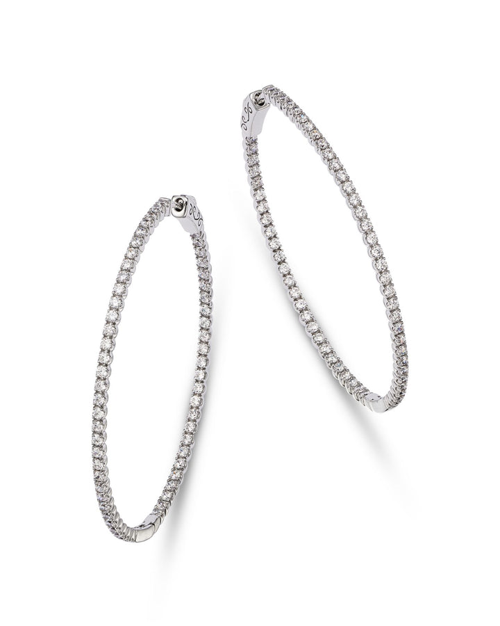 Diamond Oval Inside Out Hoop Earrings in 14K White Gold, 2.0 ct. t.w.