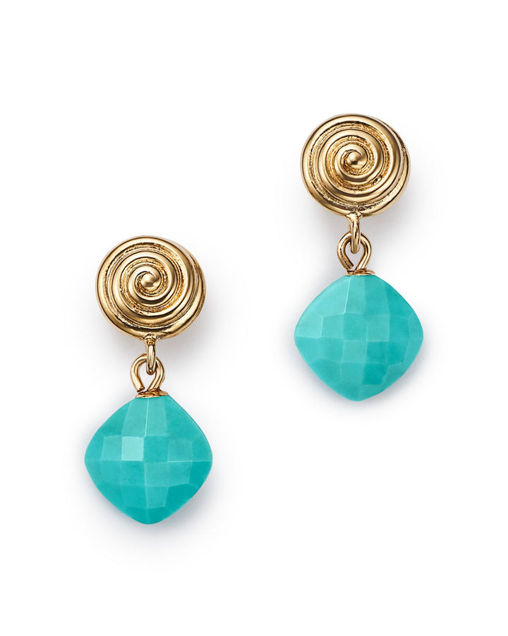 Turquoise Swirl Drop Earrings in 14K Yellow Gold - Exclusive