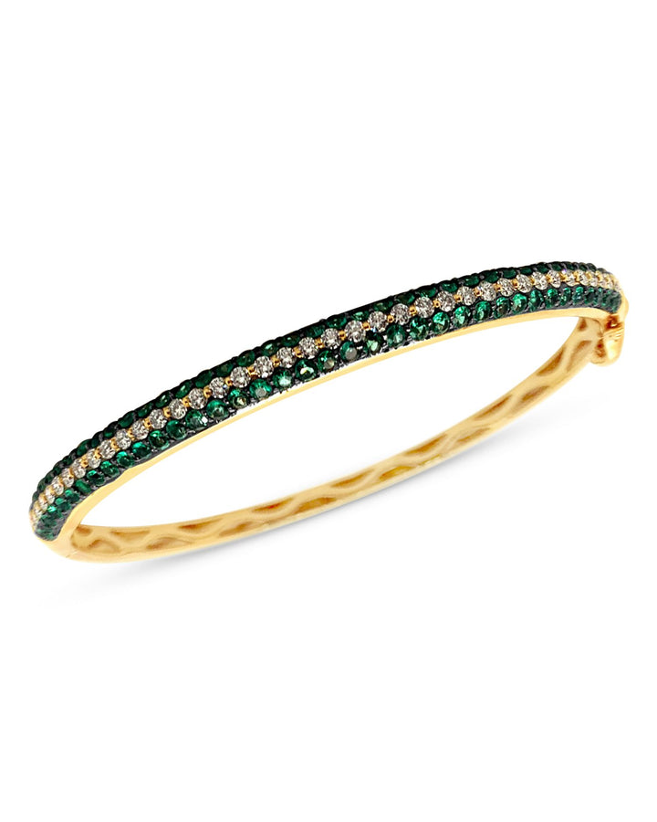 Emerald and Diamond Bangle Bracelet in 14K Yellow Gold - Exclusive