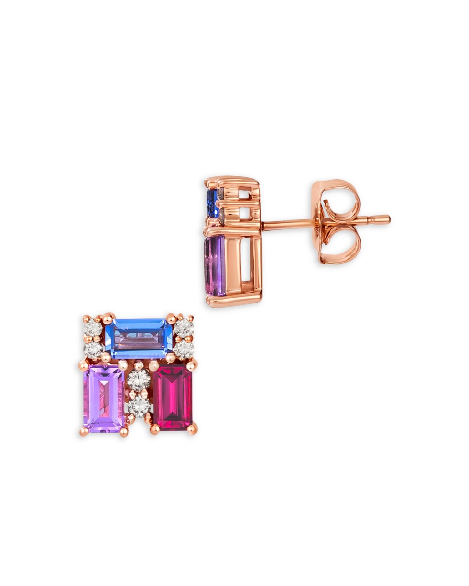 These Multi Gemstone & Diamond Square Cluster Stud Earrings by Bloomingdale's Fine Collection combine bold tanzanite, rhodolite, and amethyst with the sparkle of champagne diamonds, creating a vibrant and unique design. Ideal for adding a touch of color and elegance to any outfit.