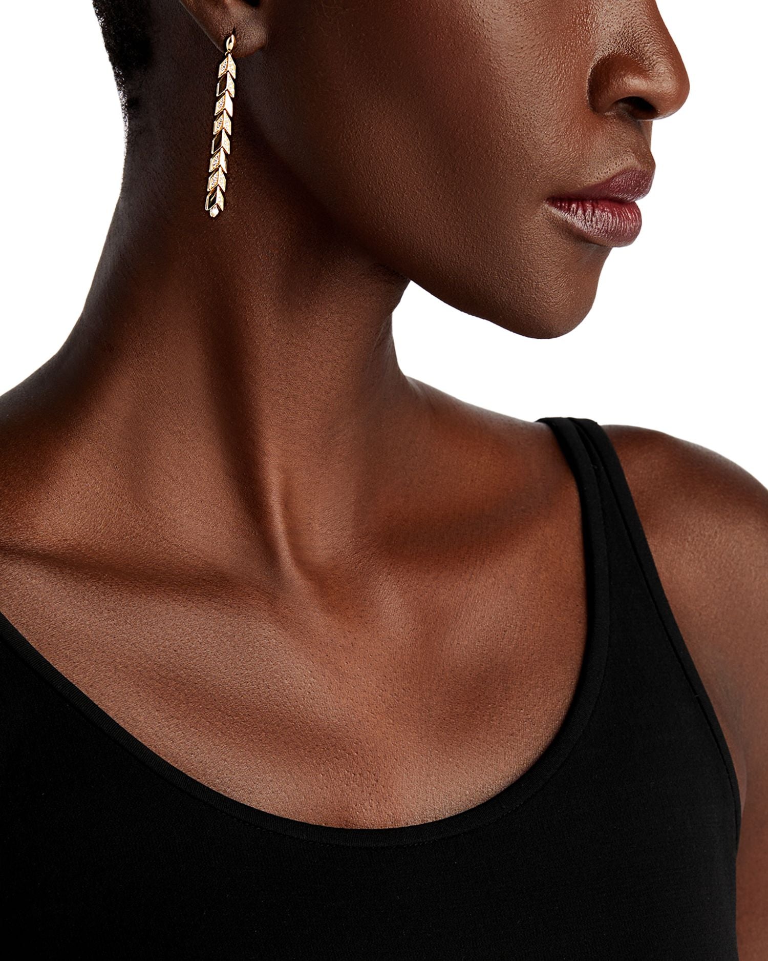 These Diamond Chevron Drop Earrings by Bloomingdale's Fine Collection offer a glamorous design, featuring dazzling diamonds set in a bold chevron pattern. A chic and elegant accessory for any occasion.
