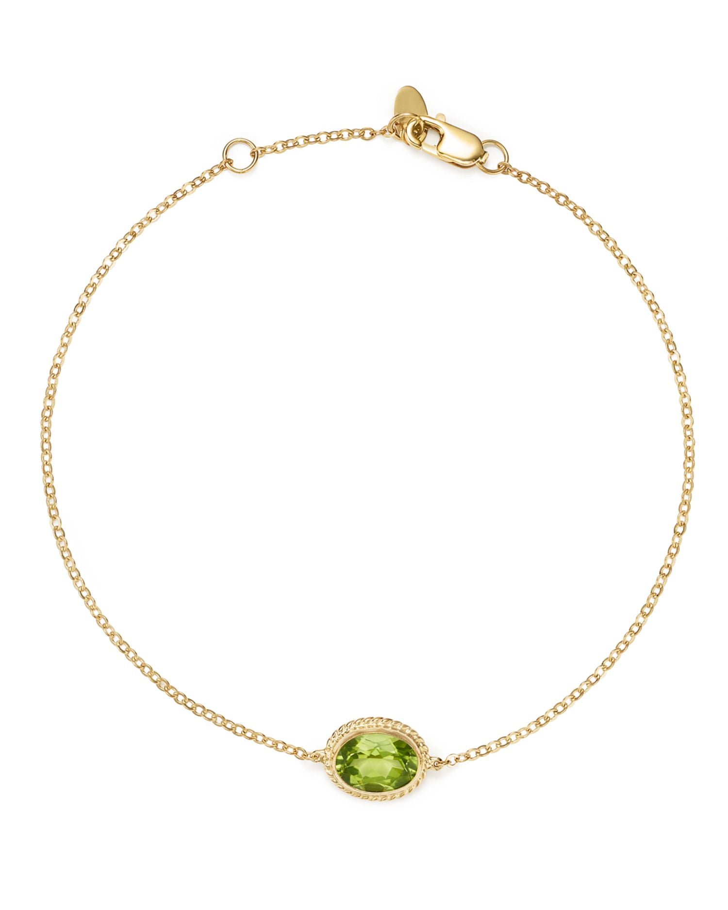 This Peridot Oval Bracelet by Bloomingdale's Fine Collection showcases a vibrant bezel-set peridot for a subtle yet striking pop of color. This exclusive design blends understated elegance with timeless sophistication.