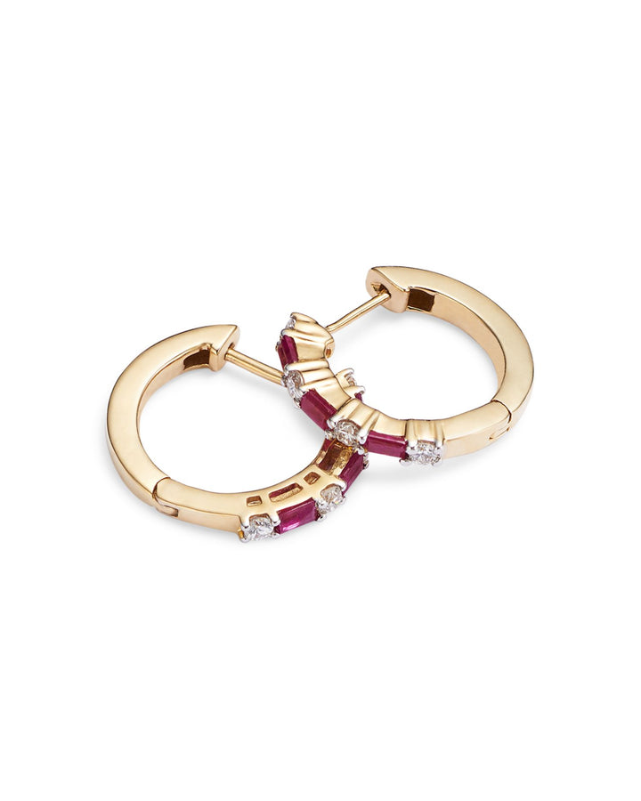 Ruby & Diamond Huggie Hoop Earrings in 14K Yellow Gold - Exclusive