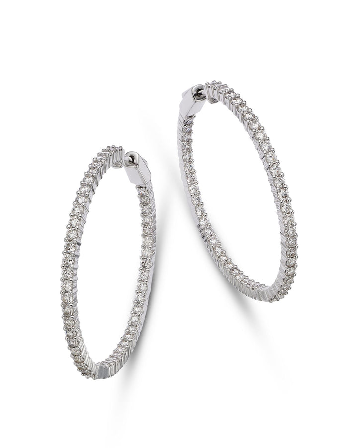 Diamond Inside Out Medium Hoop Earrings in 14K White Gold, 4.0 ct. t.w.