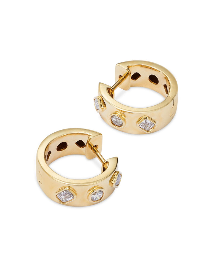 These Diamond Hoop Earrings by Bloomingdale's Fine Collection are the perfect upgrade to your jewelry wardrobe. Crafted in radiant 14K yellow gold, they feature a sparkling array of diamonds totaling 0.45 carats, offering timeless elegance with every wear. The sleek, versatile design is ideal for elevating both casual and formal ensembles.