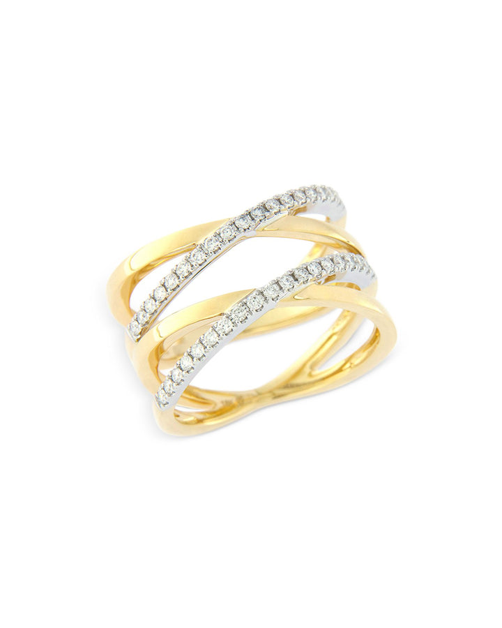Diamond Double Crossover Ring in 14K White & Yellow Gold, 0.30 ct. t.w. - Exclusive