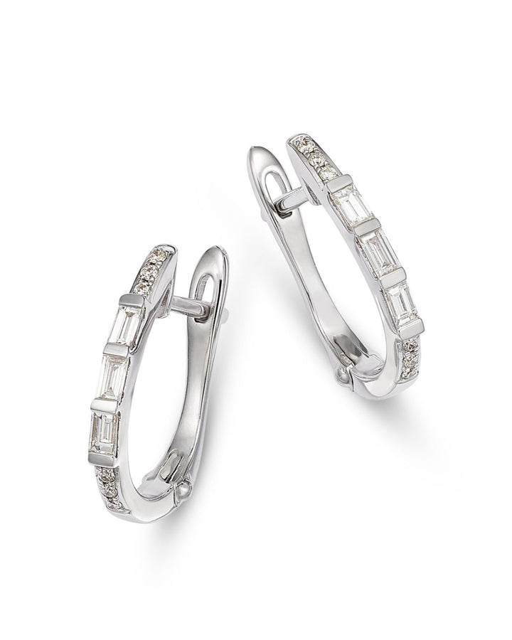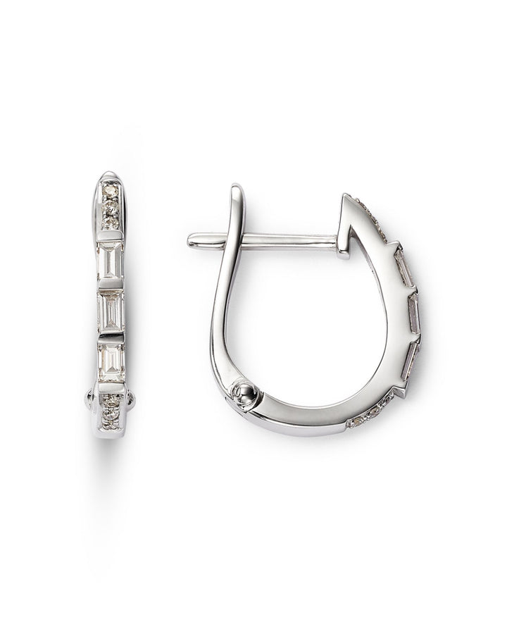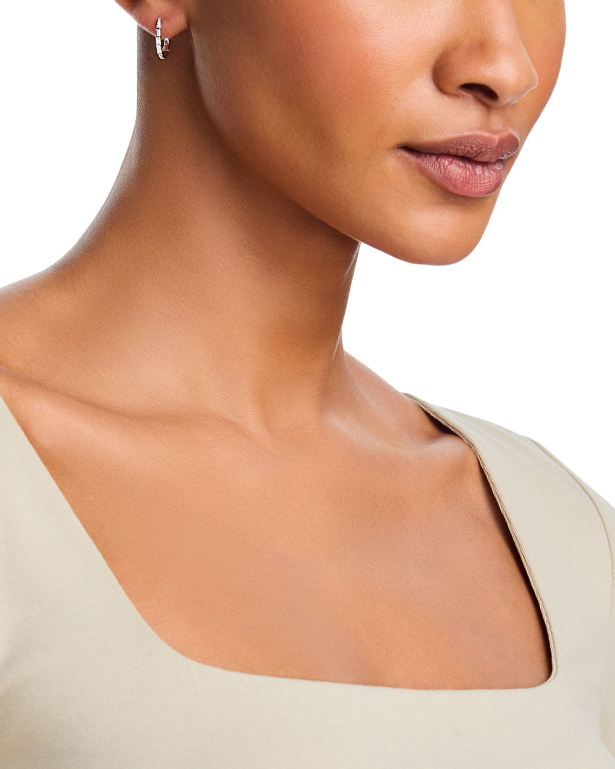 These 14K White Gold Diamond Huggie Hoop Earrings by Bloomingdale's Fine Collection bring understated elegance to your jewelry collection. Featuring a versatile design finished with shimmering diamonds and sleek white gold, these earrings are perfect for any occasion, effortlessly complementing a variety of looks.
