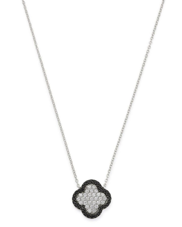 Black & White Diamond Clover Pendant Necklace in 14K White Gold - Exclusive