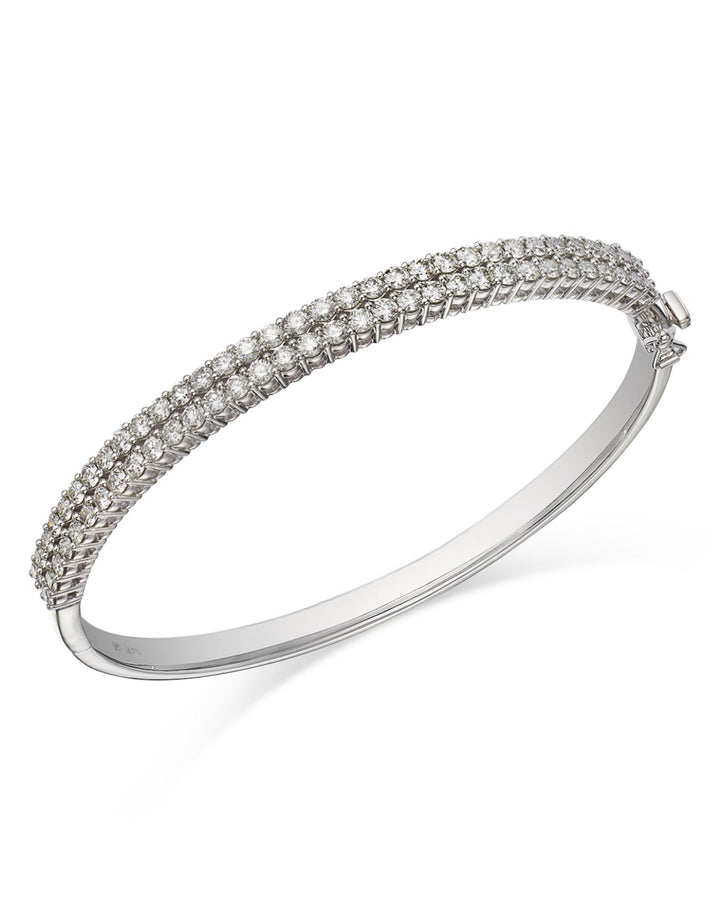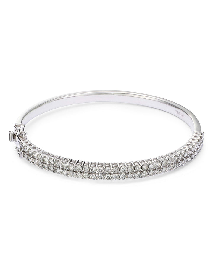 Diamond Double Row Bangle Bracelet in 14K White Gold, 3.0 ct. t.w.