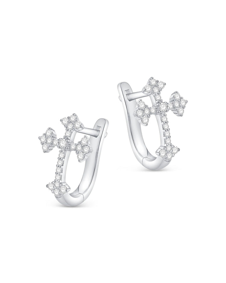 Diamond Cross Hoop Earrings in 14K White Gold, 0.25 ct. t.w.