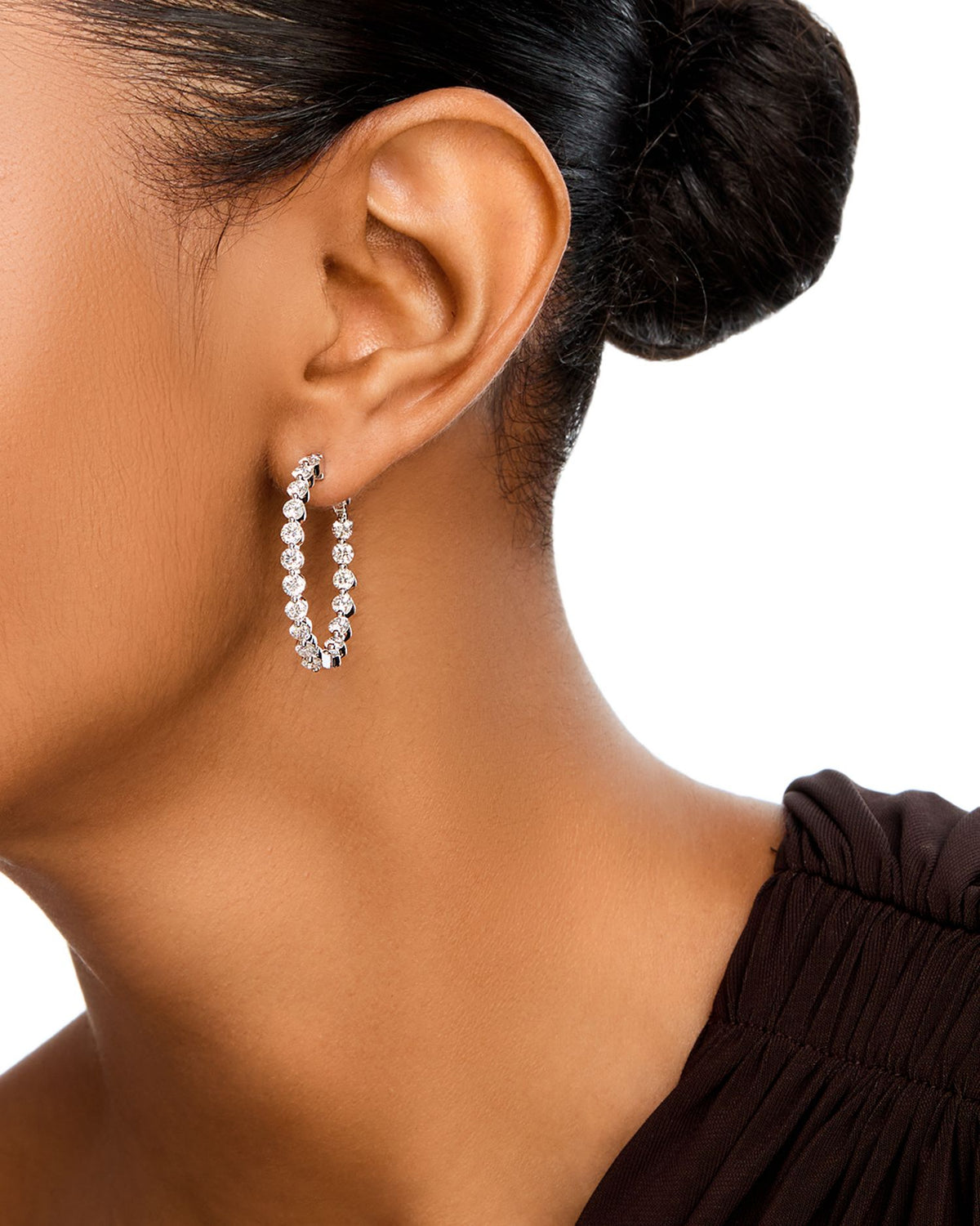 These diamond inside out medium hoop earrings by Bloomingdale's Fine Collection deliver unrelenting sparkle and elegance. From the Luxe collection, their dazzling diamonds, set to shine both inside and out, make them a captivating choice for any occasion.