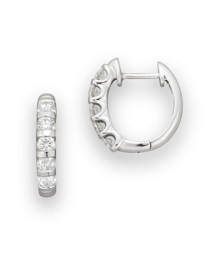 These Diamond Hoop Earrings in 14K White Gold by Bloomingdale's Fine Collection are a timeless expression of sophistication. Featuring sparkling diamonds with a total weight of 0.50 carats, these exclusive hoops are perfect for adding a touch of elegance to everyday wear or elevating evening ensembles. The minimalist hoop design is a classic staple for any jewelry lover.