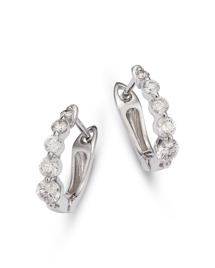 Diamond Huggie Hoop Earrings in 14K White Gold, 0.80 ct. t.w.
