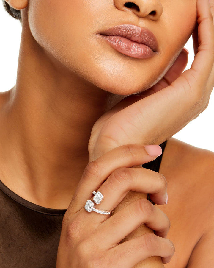 This Diamond Multi-Cut Bypass Ring by Bloomingdale's Fine Collection dazzles with a glamorous array of princess, round, and baguette diamonds. Its sophisticated bypass design is perfect for adding drama and sparkle to any outfit.