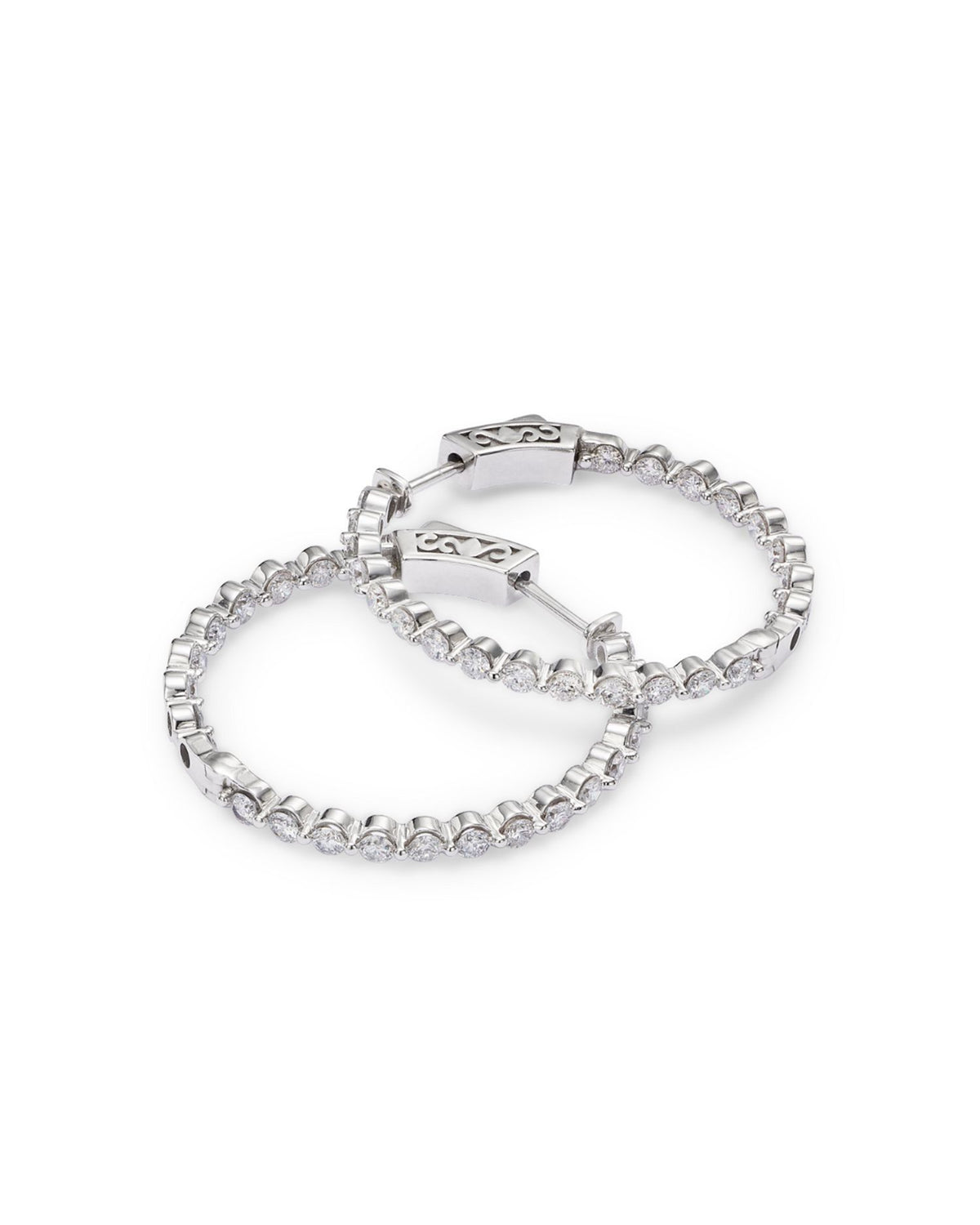 Diamond Inside Out Medium Hoop Earrings in 14K White Gold, 2.0 ct. t.w.