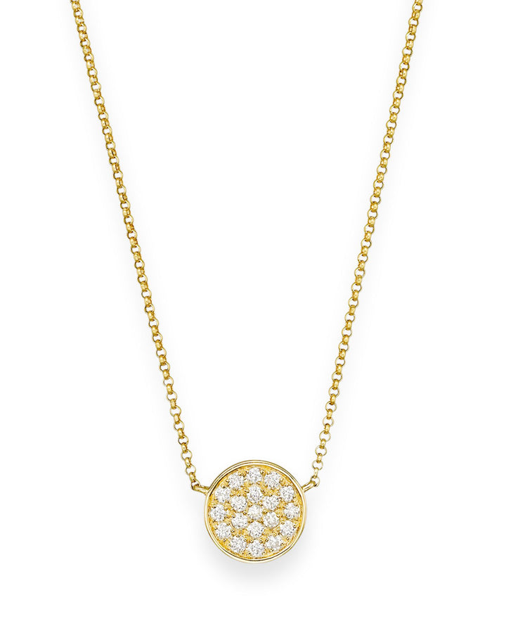 This Diamond Pavé Disk Pendant Necklace by Bloomingdale's Fine Collection showcases understated elegance with a disk design adorned with pavé diamonds. A versatile and timeless piece for any wardrobe.