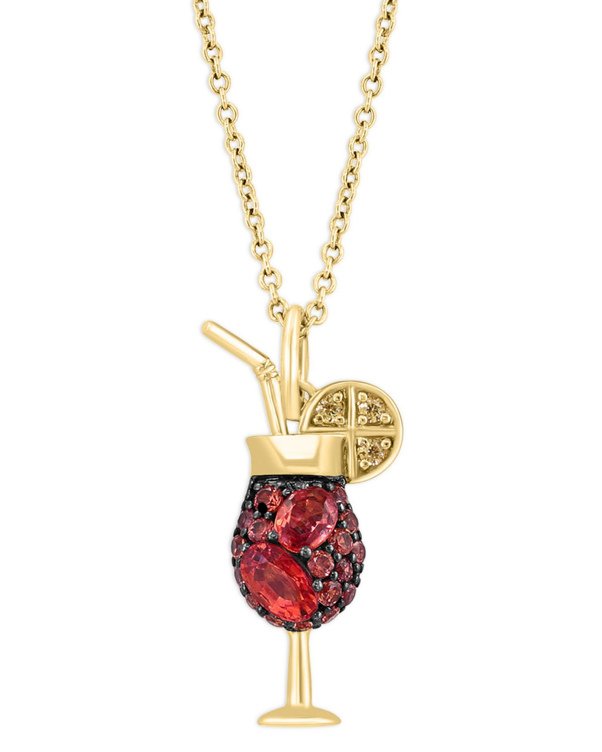 Handcrafted in 14K yellow gold with black rhodium plating, featuring orange sapphires (0.81 ct. t.w.) and yellow sapphires (0.04 ct. t.w.). Pendant measures 0.34'L, with an 18'L chain and lobster clasp closure.