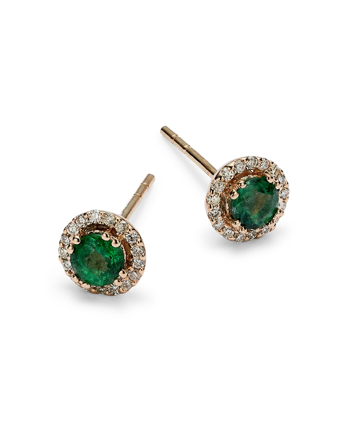 These Emerald and Diamond Stud Earrings by Bloomingdale's Fine Collection offer timeless elegance. Featuring vivid emeralds surrounded by sparkling diamonds, these studs are a perfect touch of luxury for any occasion. Emerald is also the birthstone for May, adding a meaningful element to this design.