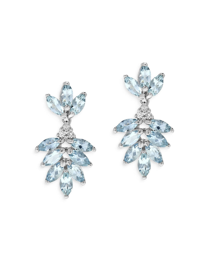 These Aquamarine & Diamond Statement Drop Earrings by Bloomingdale's Fine Collection are a luminous and elegant design. Clusters of aquamarine and diamonds create a striking drop design, perfect for making a sophisticated statement.