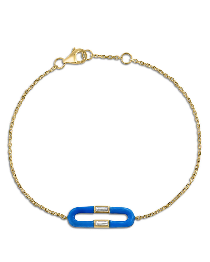 Diamond Accent Link Bracelet in 14K Yellow Gold with Blue Enamel - Exclusive
