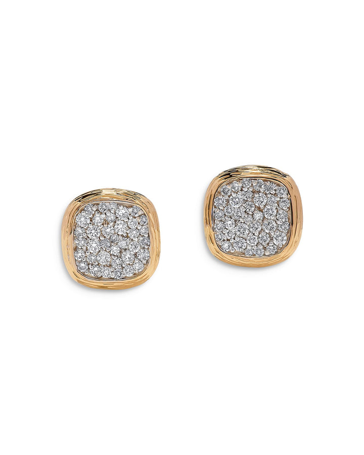 Handcrafted in 14K yellow gold, featuring diamonds (1.0 ct. t.w.; HI/I1I2 clarity). Earrings measure 0.5' in diameter with post-back closures. Made in the USA.