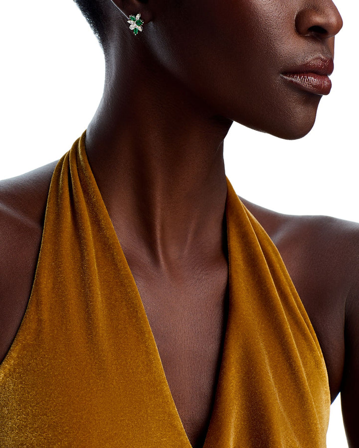These Emerald & Diamond Flower Cluster Stud Earrings by Bloomingdale's Fine Collection capture the delicate beauty of flowers. Featuring marquis- and pear-cut emeralds complemented by round diamonds, these earrings are a unique and sophisticated choice for any occasion.