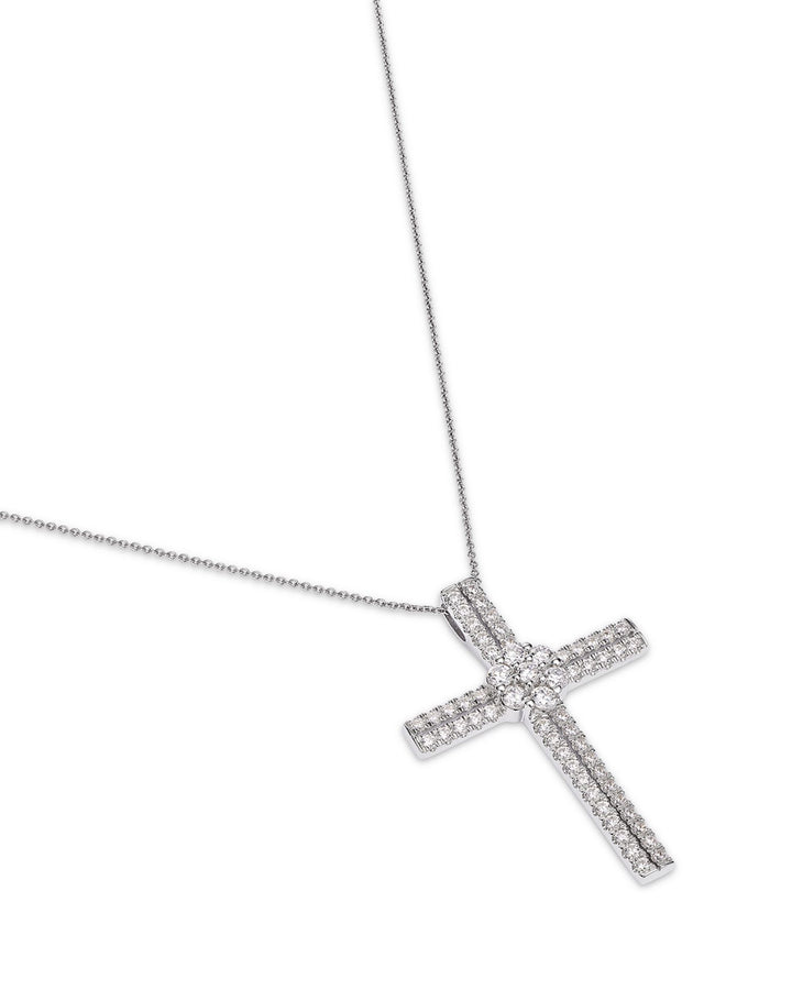 Diamond Cross Pendant Necklace in 14K White Gold, 1.0 ct. t.w.