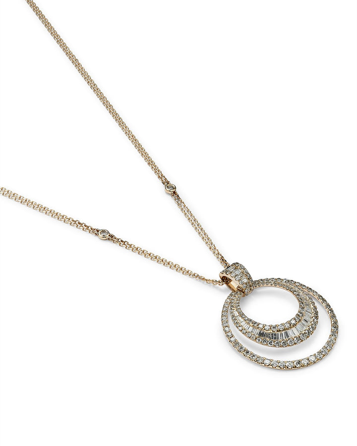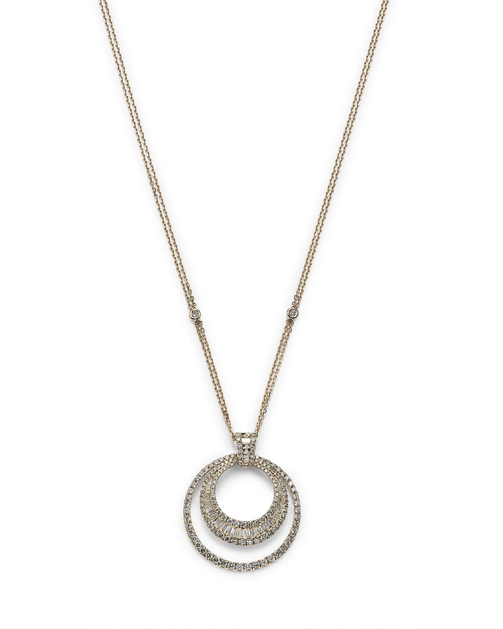 This Diamond Circle Pendant Necklace by Bloomingdale's Fine Collection is a dazzling statement piece. Featuring concentric circles of sparkling diamonds arranged in a stunning pendant, this necklace brings bold glamour to any occasion.