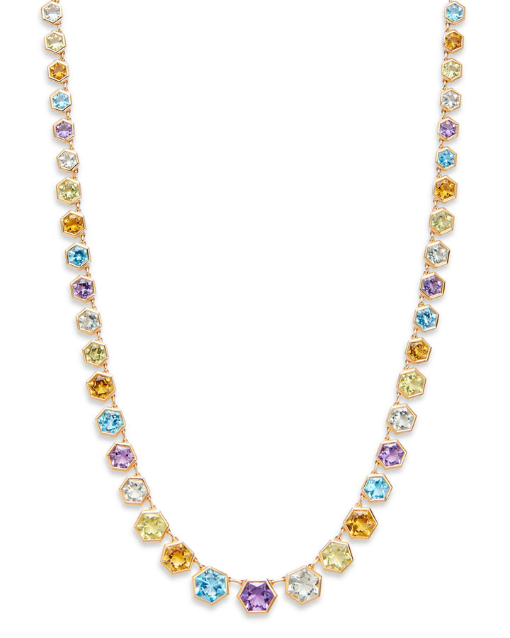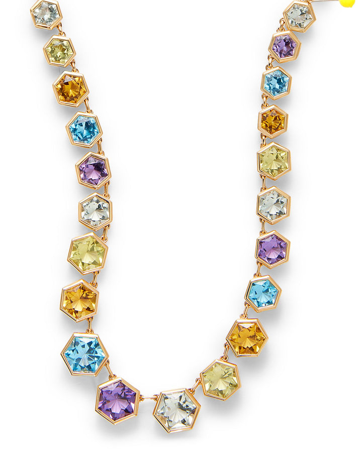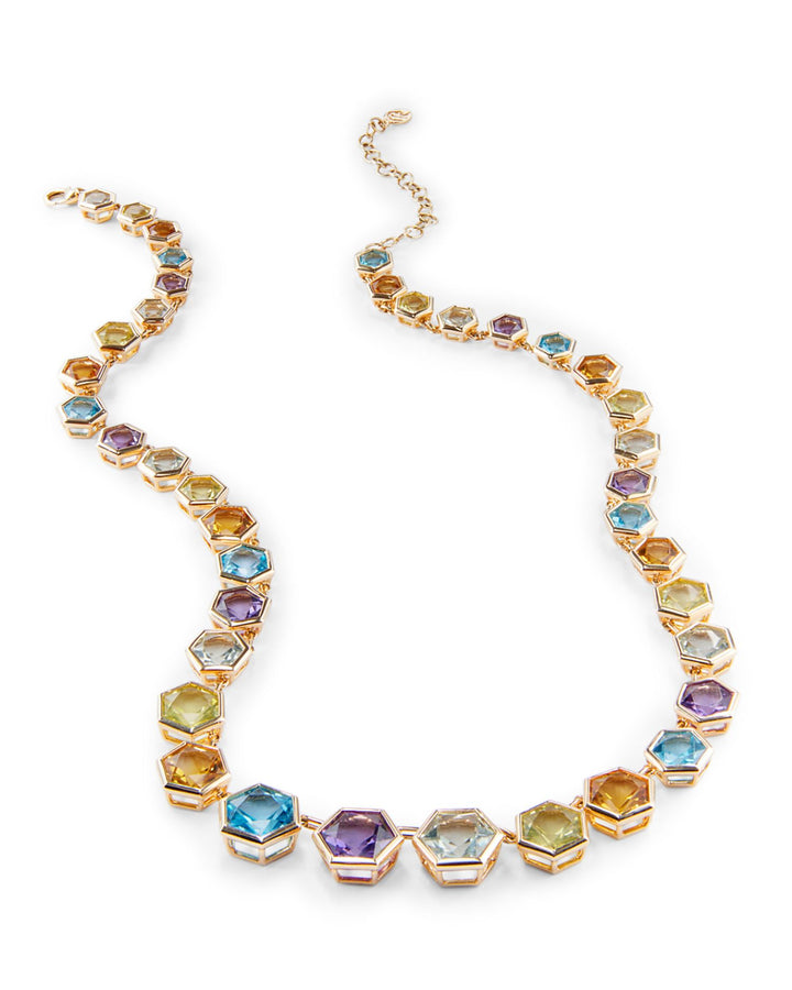 Multi Gemstone Hexagon Collar Necklace in 14K Yellow Gold, 16"