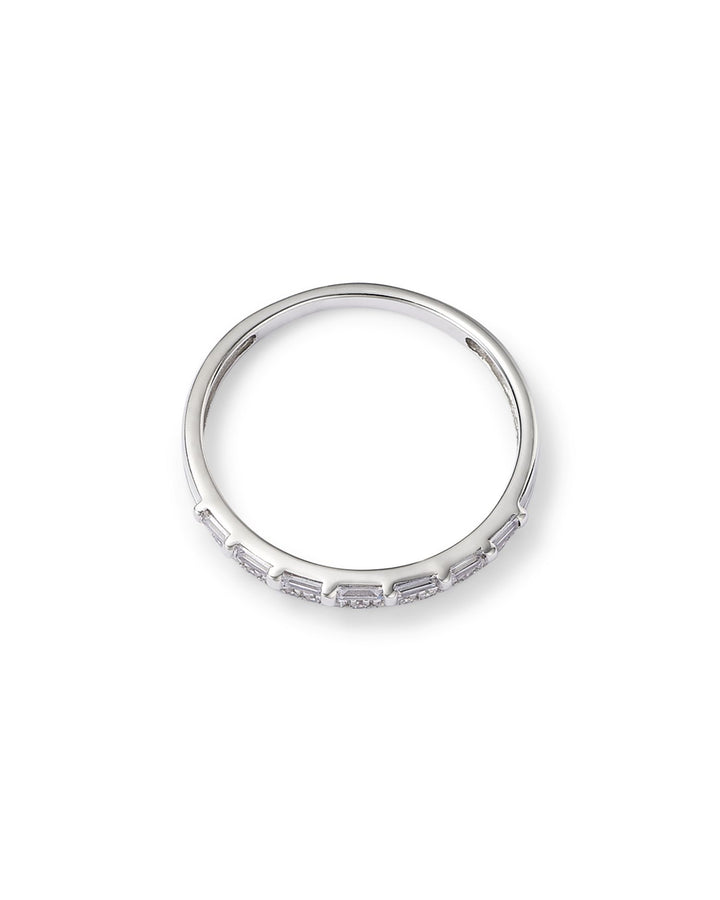 Handcrafted in 14K white gold, this band features diamonds totaling 0.25 carats (color/clarity: HI/I1I2). All gemstone carat weights (ct. t.w.) are approximate, with a variance of 0.05 carat. The white gold is surface-coated with rhodium to enhance shine and color.