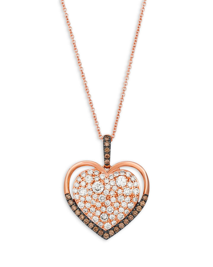 Brown & Champagne Diamond Scattered Heart Cluster Pendant Necklace in 14K Rose Gold, 0.94 ct. t.w.