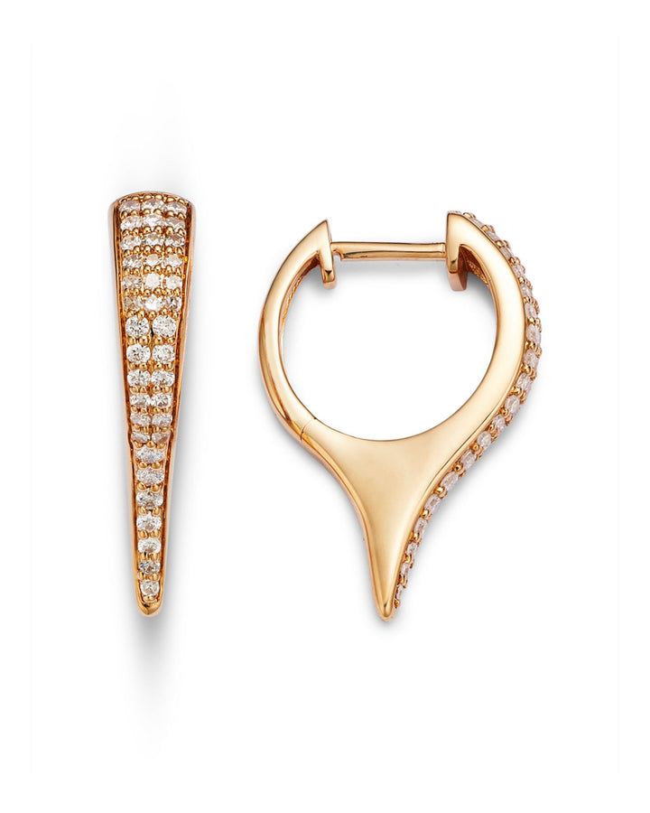 Handcrafted in 14K yellow gold with pavé diamonds (0.37 ct. t.w., color/clarity: HI/I2). Hinge hoop closure for secure wear.