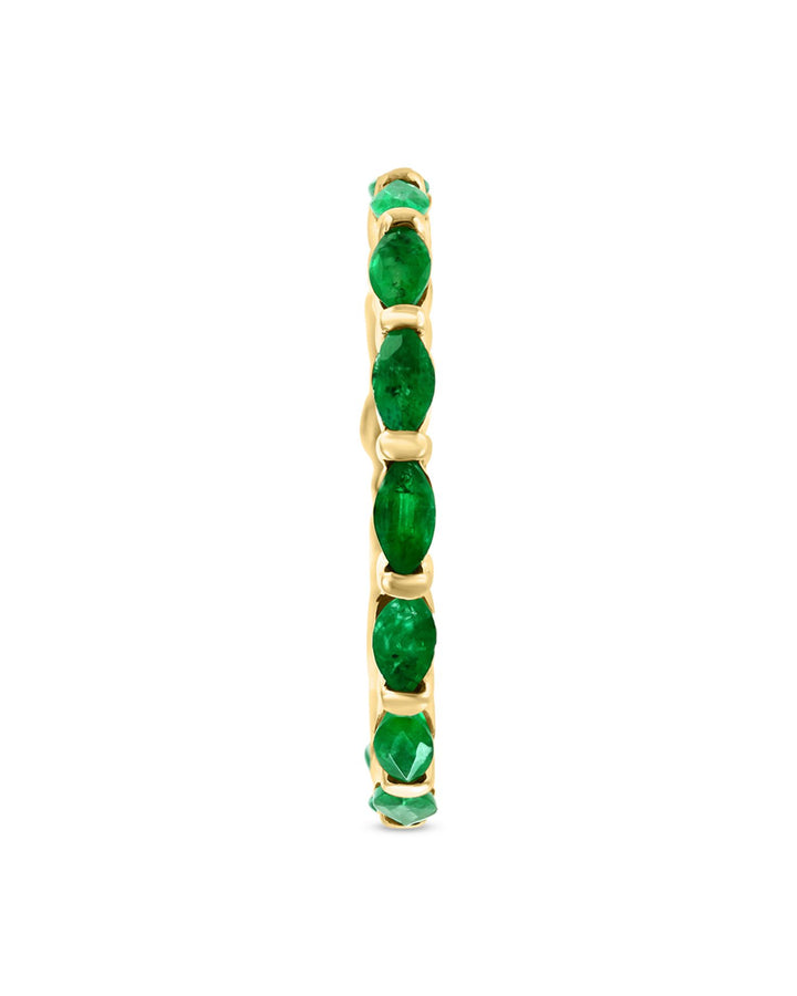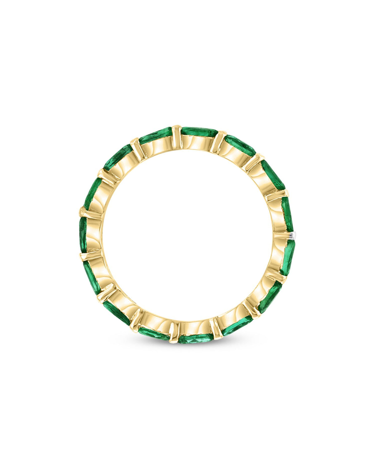 This Emerald Eternity Band by Bloomingdale's Fine Collection features radiant marquise-cut emeralds that sparkle in a continuous loop, making this piece the perfect symbol of everlasting love. The elegant 14K yellow gold band enhances the natural beauty of the emeralds, creating a sophisticated and timeless look. Ideal as a wedding band or a statement piece for special occasions.